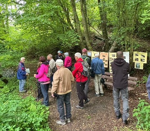 Einen kurzweiligen und informativen Wandertag erlebten die Teilnehmer des Stadt-Land-Fluss-Festivalbeitrags in Pracht am 25. Mai. Informationen über den Birkenbach und eine Regenpause im Kloster Hassel machten den Weg “Bergbau, Buddhismus und das Birkenbachtal” besonders abwechslungsreich.