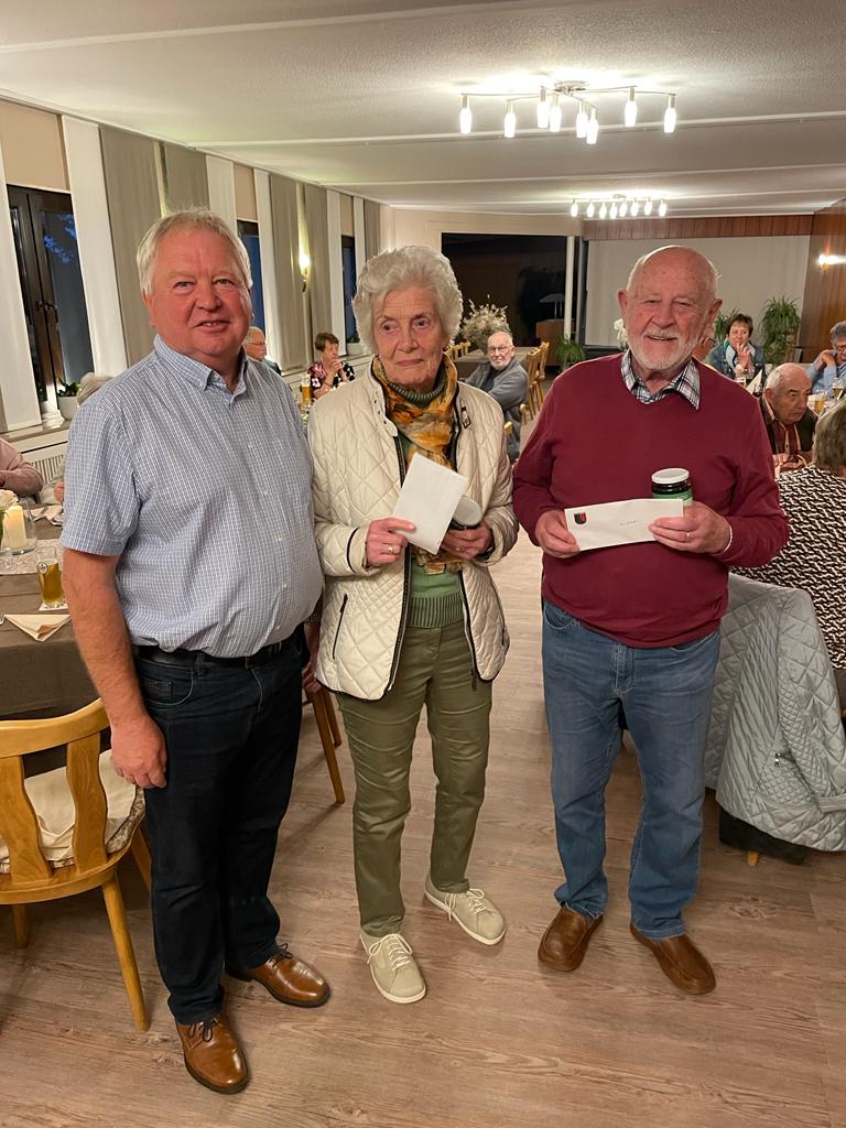 Als älteste Teilnehmer waren die 88 jährige Irene Pracht und der 91 jähriger Friedhelm Pracht mitgefahren. Ortsbürgermeister Udo Seidler überreichte ihnen ein Präsent zur Erinnerung an diesen schönen Tag. An diesem Tag hatte auch Lore Fuchs Geburtstag und erhielt zu ihrem 85. Geburtstag ein Präsent.